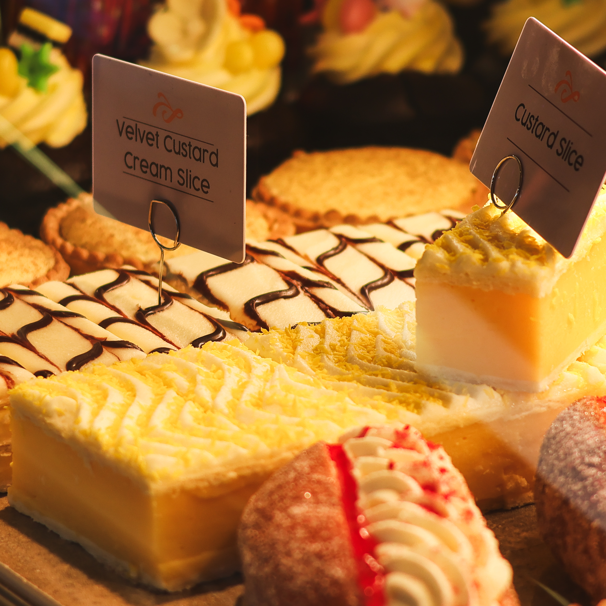 We have a wide range of cabinet food, including muffins and slices, hot pies, fresh salads, filled rolls, desserts and gateau’s.