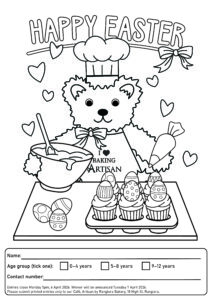 Entries close Monday 5pm, 6 April 2026. Winner will be announced Tuesday 7 April 2026. Please submit printed entries only to our Café, Artisan by Rangiora Bakery, 18 High St, Rangiora.