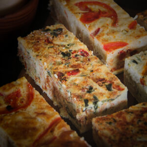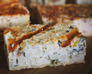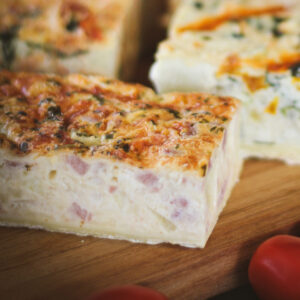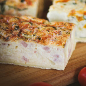 Ham, cheese, potato, onion, parsley and free range eggs.