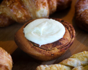 Cinnamon rolled in a soft and fluffy scroll, finished with a cream cheese icing.