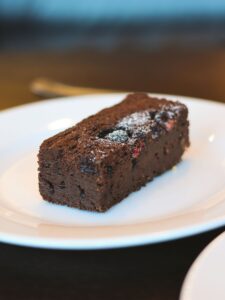 Decadent chocolate brownie with delicious raspberries in each bite.